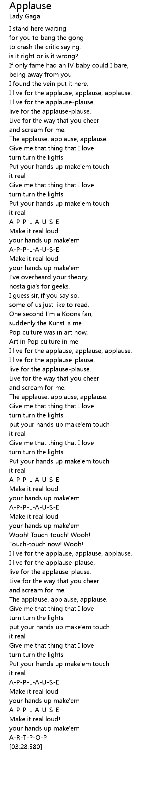 | [03:12.410] | A-P-P-L-A-U-S-E |