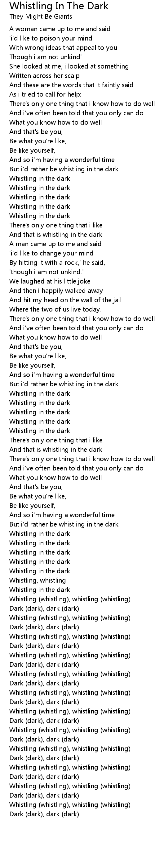 But i'd rather be whistling in the dark |
