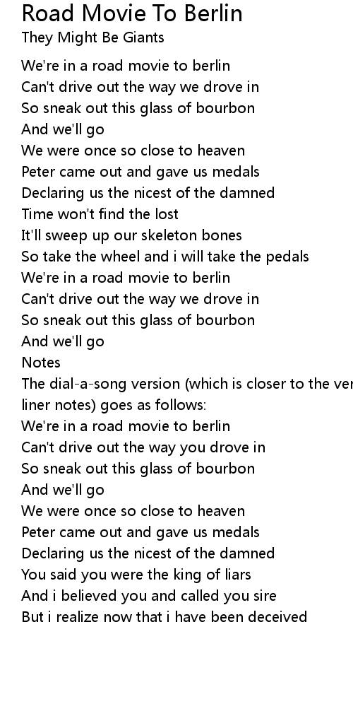 We're in a road movie to berlin |