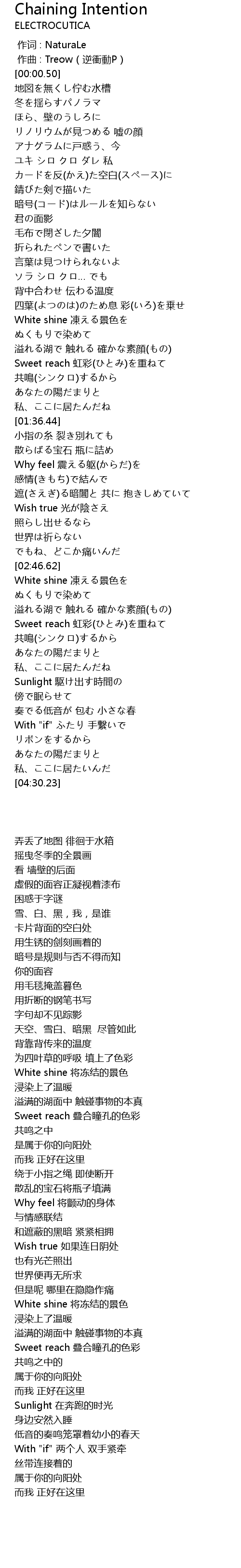 | [03:32.94] | White shine 凍える景色を |