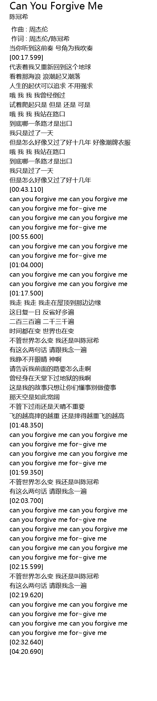 | [00:49.660] | can you forgive me for give me |