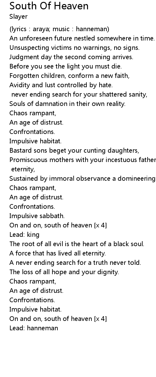 | On and on, south of heaven [x 4] | |
