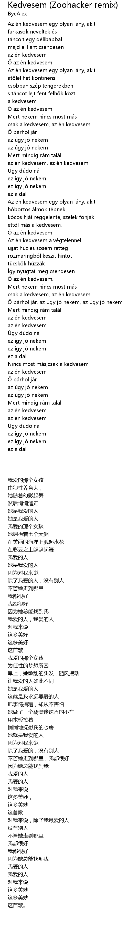 | [02:39.82] | Nincs most má s, csak a kedvesem |