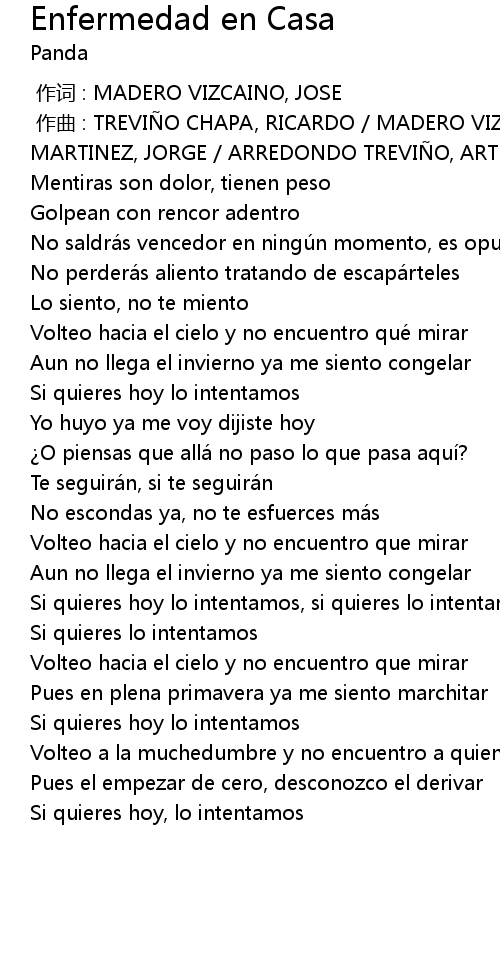 | [00:01.000] | 作曲 : TREVIÑO CHAPA, RICARDO / MADERO VIZCAINO, JOSE / VAZQUEZ MARTINEZ, JORGE / ARREDONDO TREVIÑO, ARTURO |
