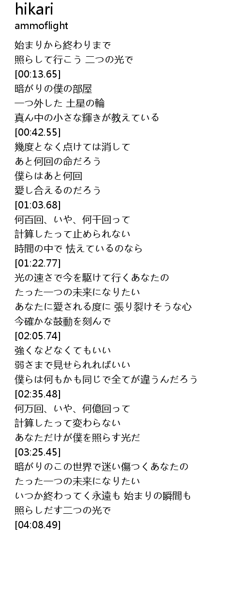 | [03:59.17] | 照らしだす二つの光で |