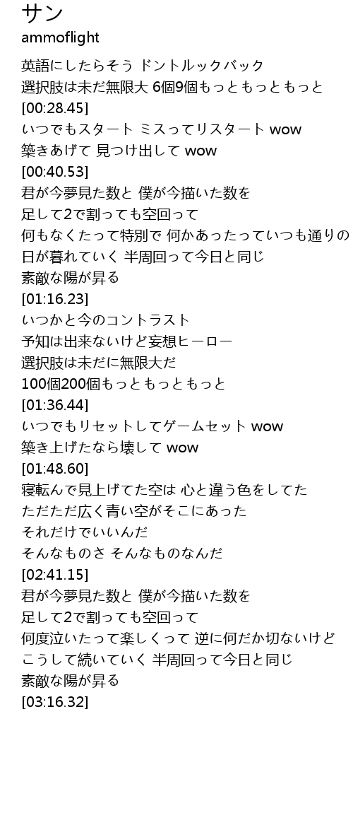 | [03:13.23] | 素敵な陽が昇る |