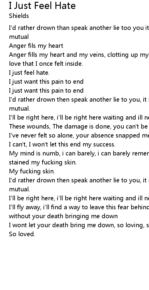 | I'd rather drown than speak another lie too you it seems the feeling is not mutual | |