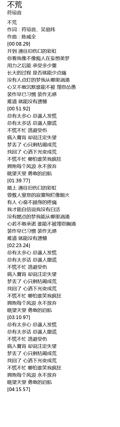 | [00:00.79] | 不荒 |