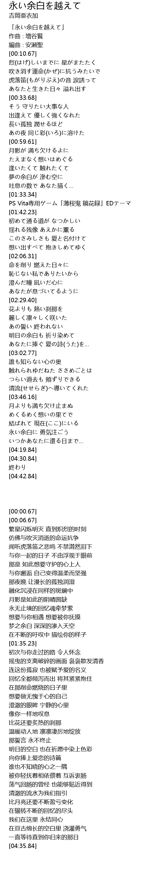 | [04:04.42] | 永い余白に 勇気注ごう |