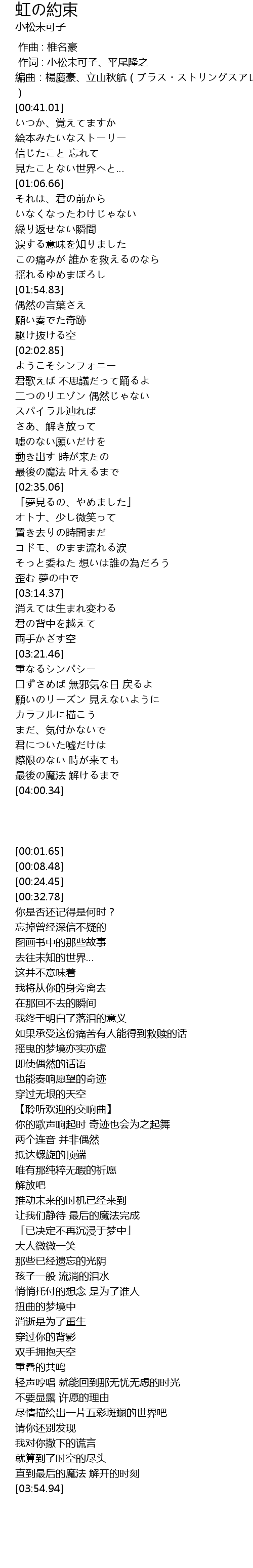 | [00:01.00] | 作词 : 小松未可子、平尾隆之 |