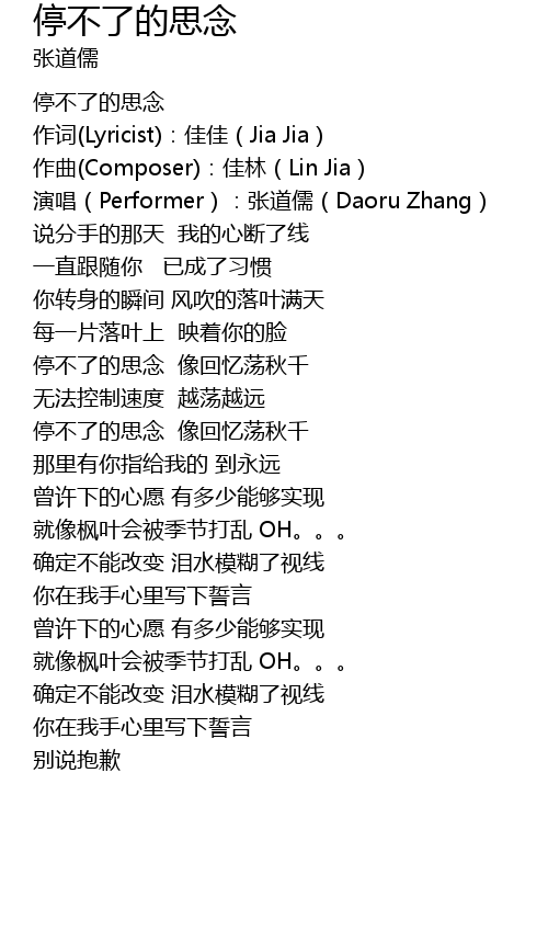 | 作词(Lyricist):佳佳(Jia Jia) | |