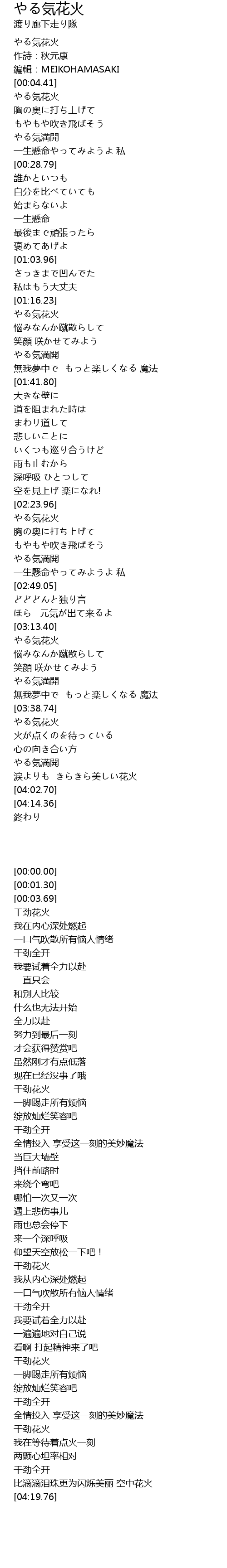 | [03:54.09] | 涙よりも きらきら美しい花火 |