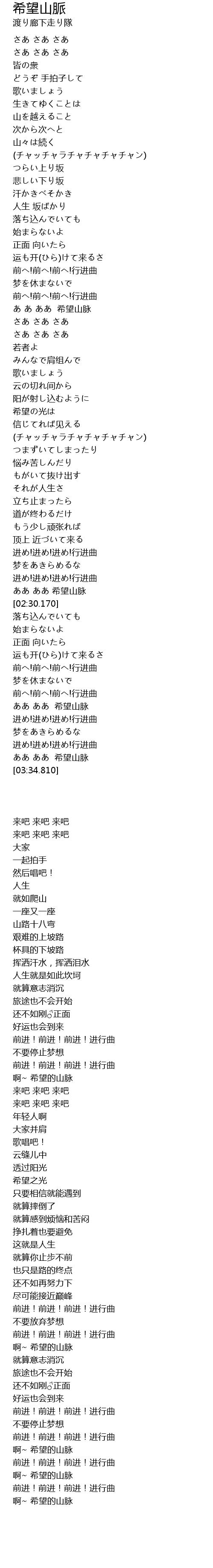 | [02:24.600] | ああ ああ 希望山脉 |