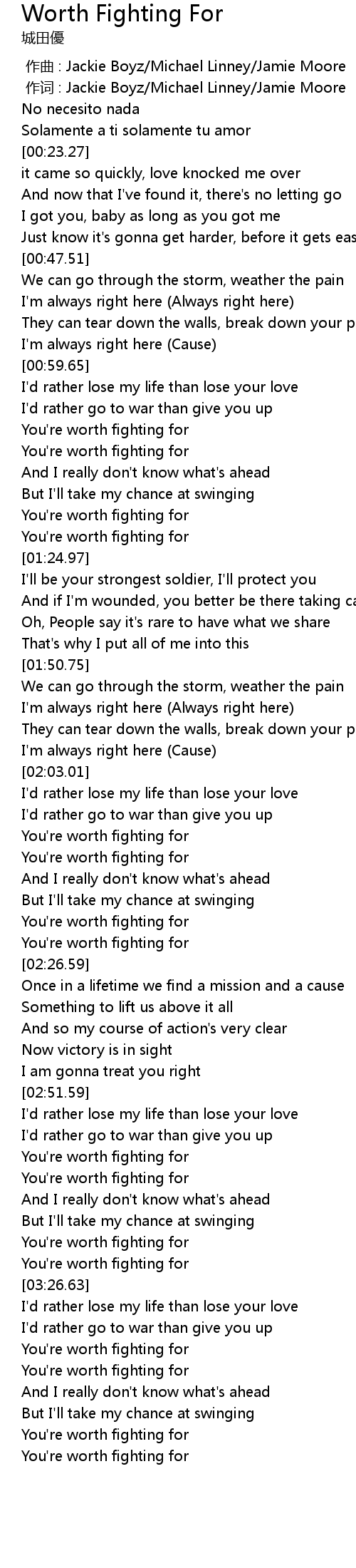 | [03:23.70] | You're worth fighting for |