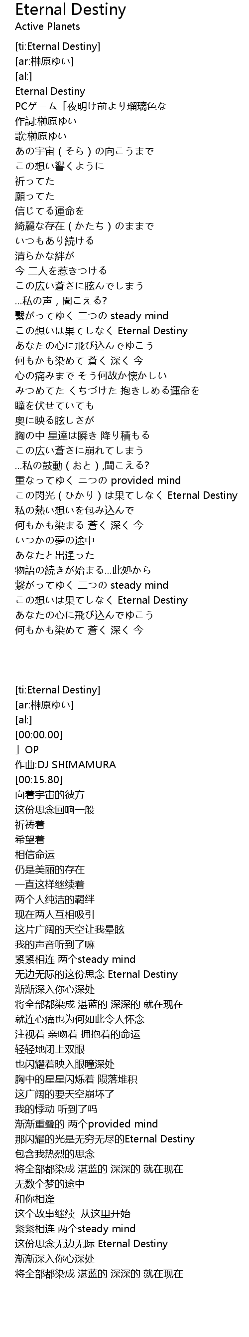 | [00:00.00] | Eternal Destiny |