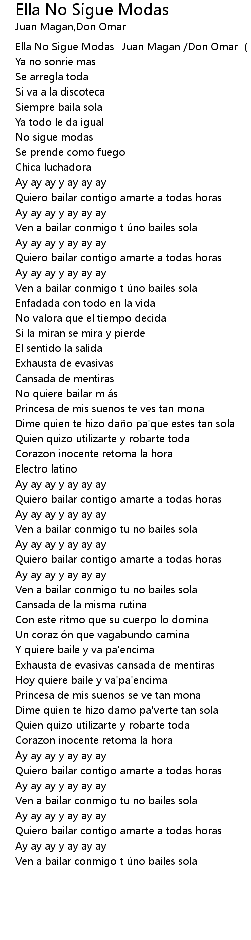 | [00:00.00] | Ella No Sigue Modas Juan Magan Don Omar ao ma er |