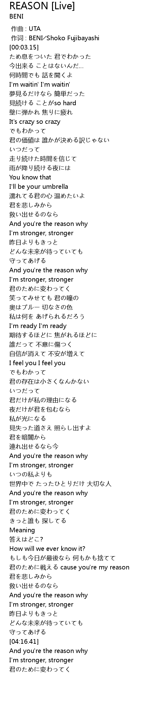 | [03:01.03] | And you' re the reason why |