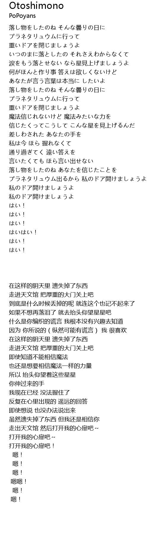 | [02:01.91] | プラネタリュウム出るから 私のドア開けましょうよ |