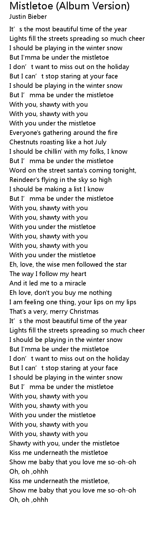 | But I' mma be under the mistletoe | |