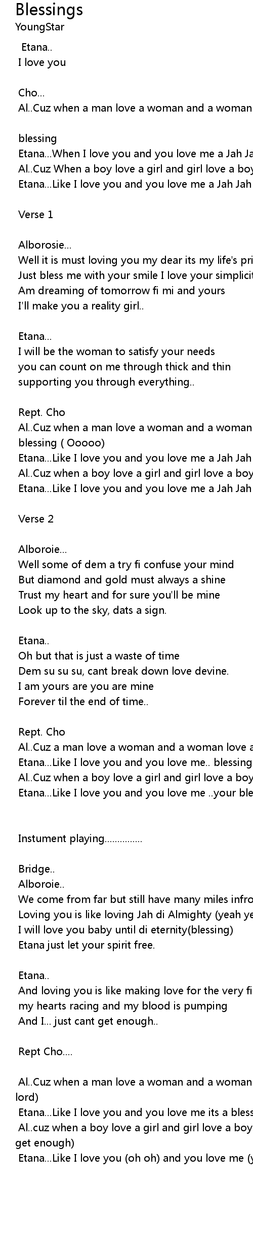 Etana...Like I love you and you love me ..your blessing.. |