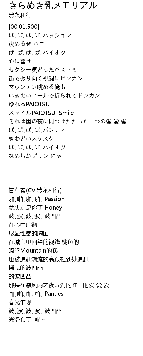| [00:06.450] | ぱ、ぱ、ぱ、ぱ、パイオツ |