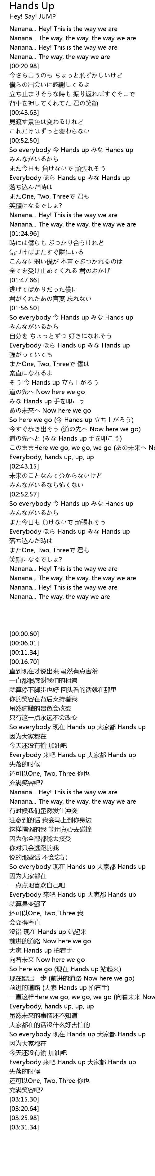 | [03:04.32] | Everybody Hands up Hands up |