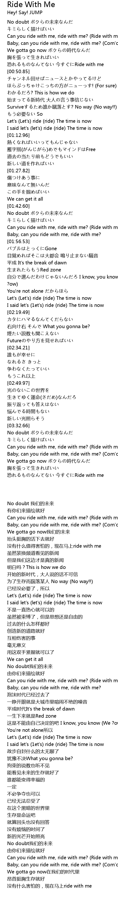 | [02:13.12] | Let's (Let's) ride (ride) The time is now |