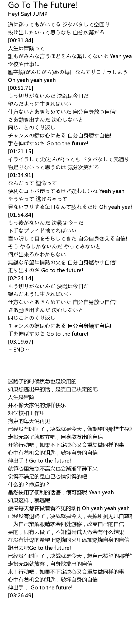 | [03:14.79] | shǒu shēn Go to the future! |