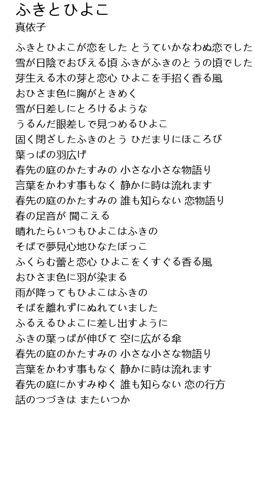 | [00:01.00] | ふきとひよこが恋をした とうていかなわぬ恋でした |
