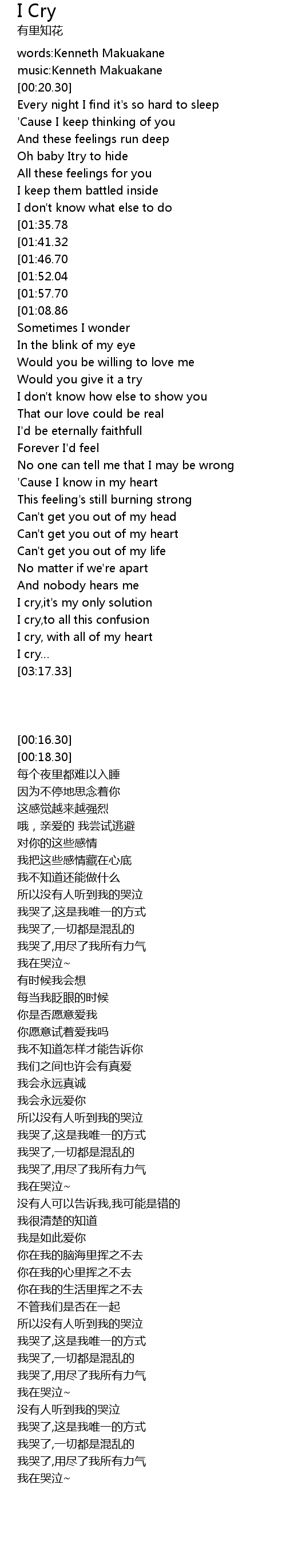 | [02:45.34][01:52.04][00:58.73] | I cry, with all of my heart |