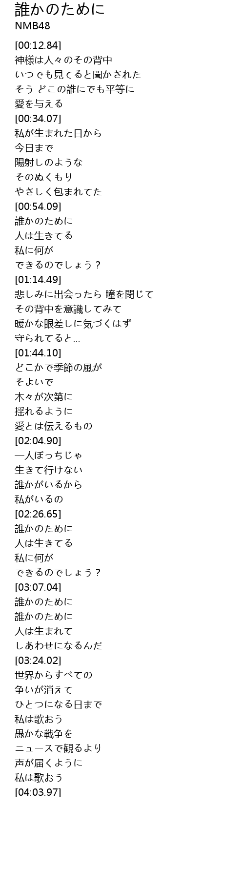 | [01:38.12] | 暖かな眼差しに気づくはず |