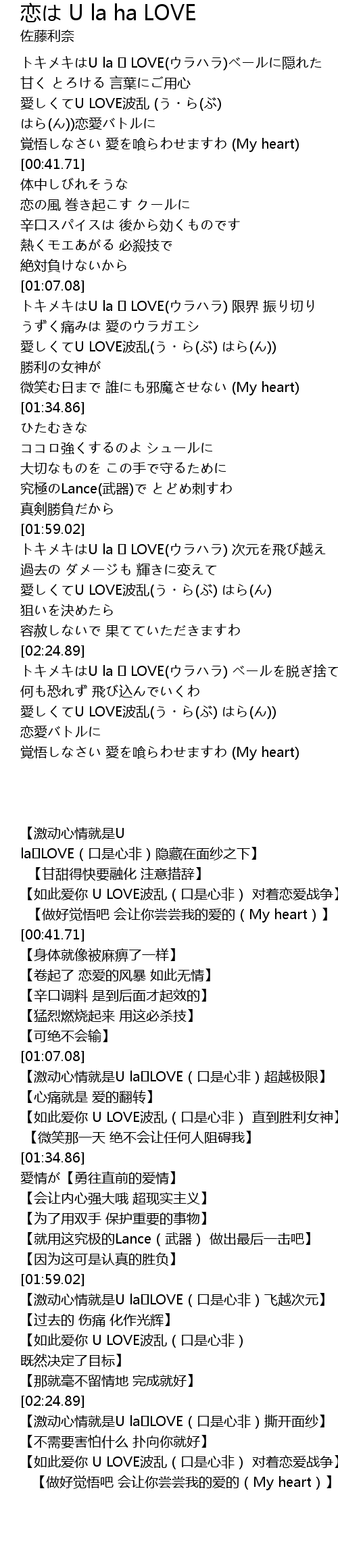 | [02:54.00] | U la LOVE tuo she |