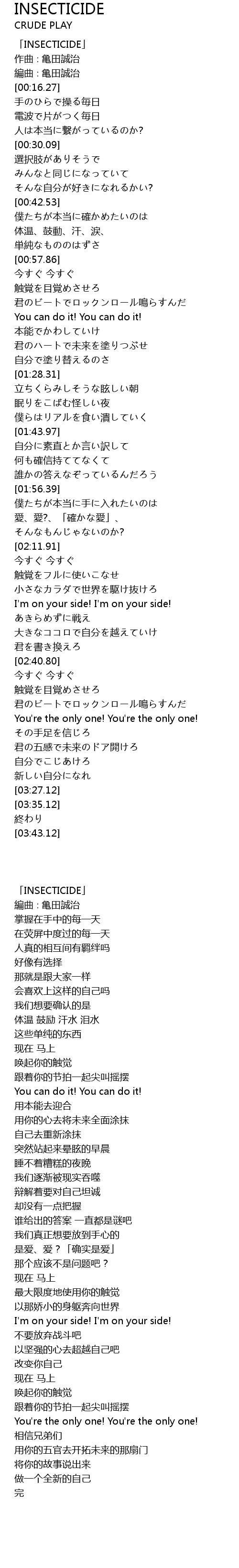 | [00:00.27] | 「INSECTICIDE」 |