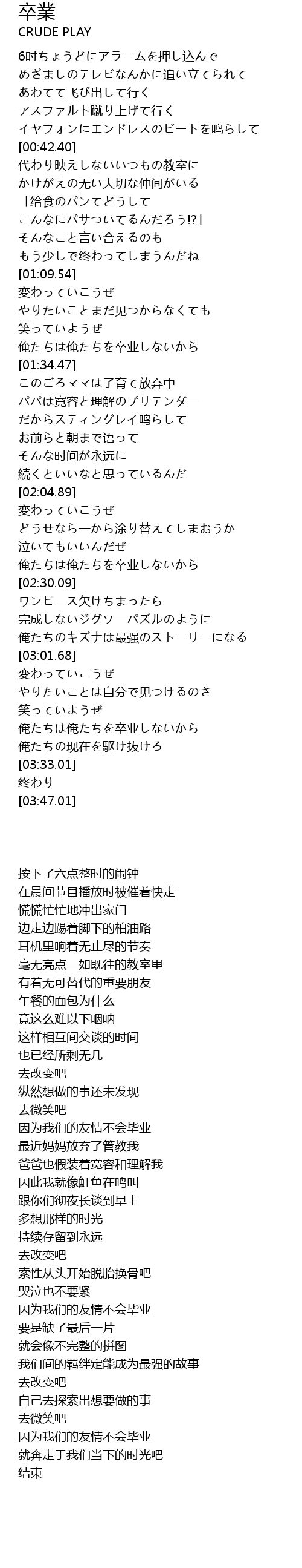 | [02:22.84] | 俺たちは俺たちを卒业しないから |