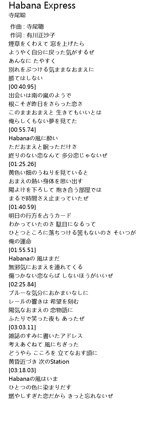 | [00:56.26] | Habanaの風に酔い |