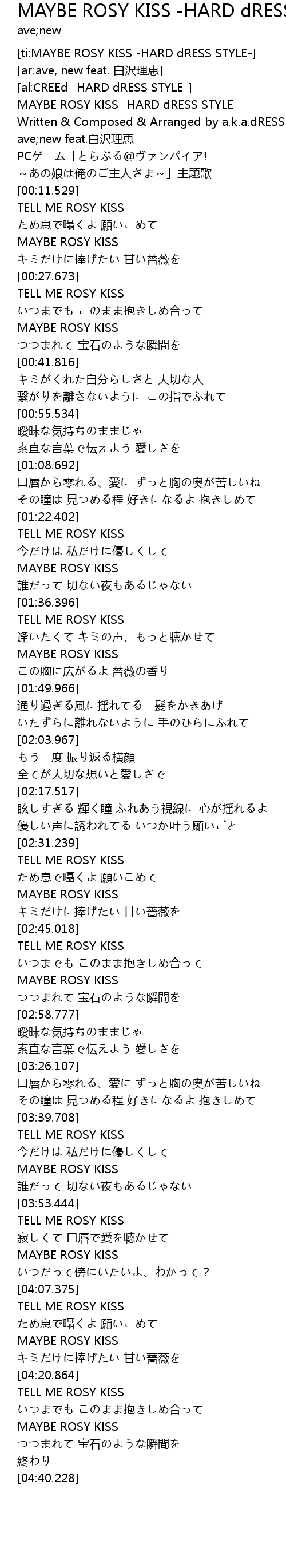 | [00:00.829] | MAYBE ROSY KISS -HARD dRESS STYLE- |