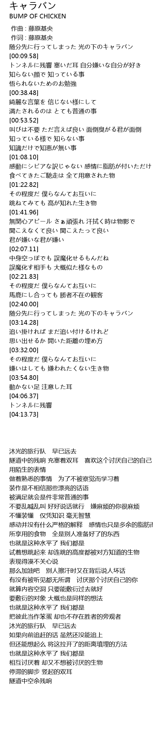 | [00:00.14] | 随分先に行ってしまった 光の下のキャラバン |
