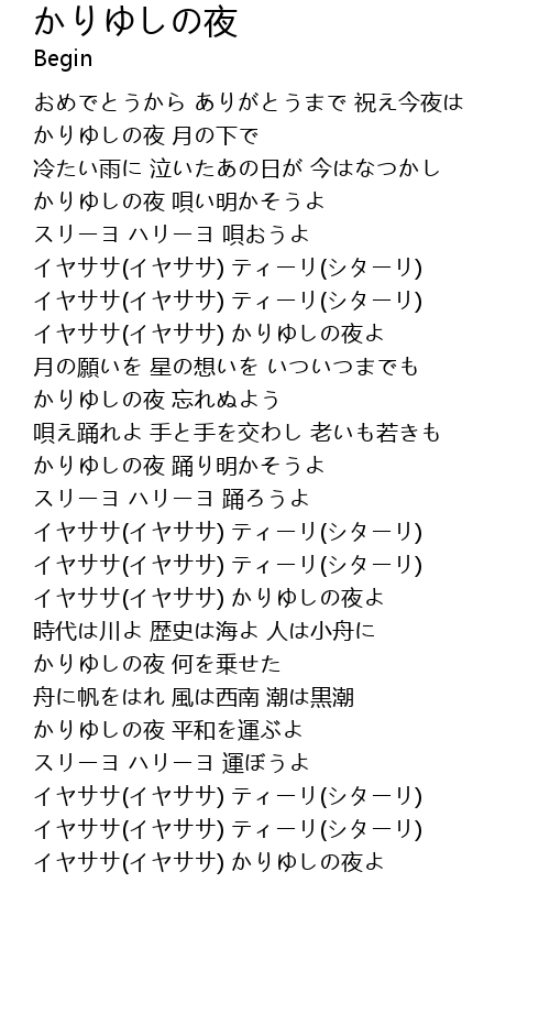 | Song | かりゆしの夜 |