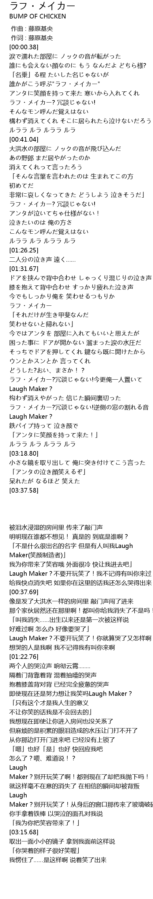 | [03:01.60] | ? rǒng tán! nì cè chuāng gē yīn Laugh Maker? |