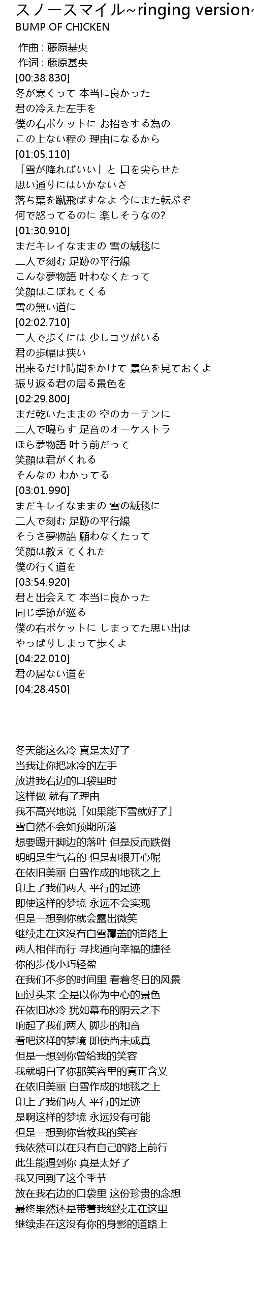 | [00:38.930] | 冬が寒くって 本当に良かった |
