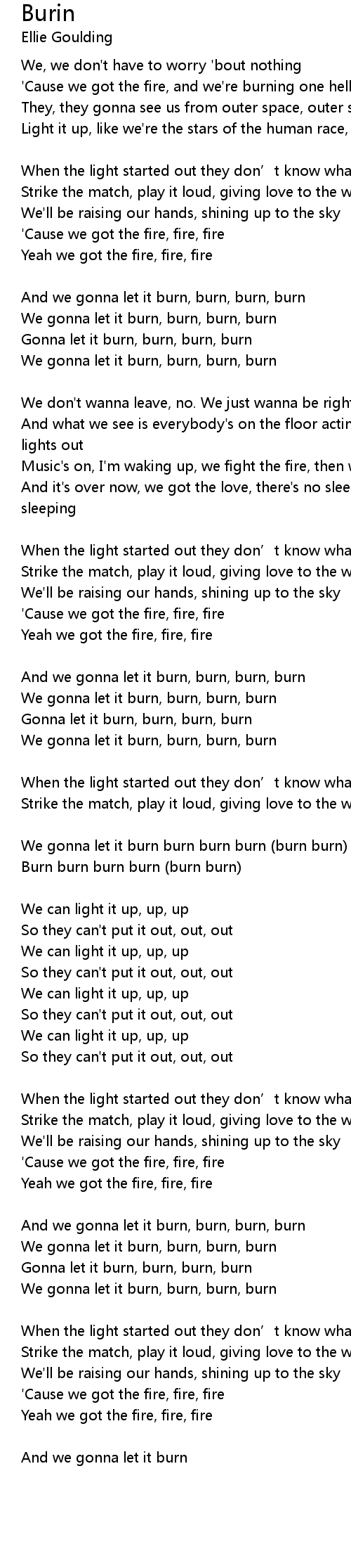 | 'Cause we got the fire, and we're burning one hell of a something | |