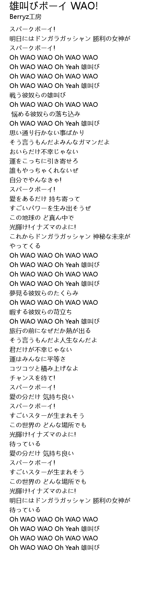 | [00:17:00] | Oh WAO WAO Oh Yeah 雄叫び |