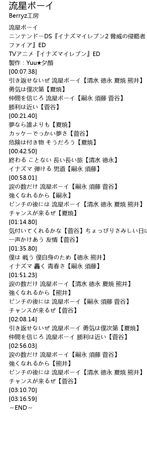 | [02:49.92] | 仲間を信じろ 流星ボーイ 勝利は近い【菅谷】 |