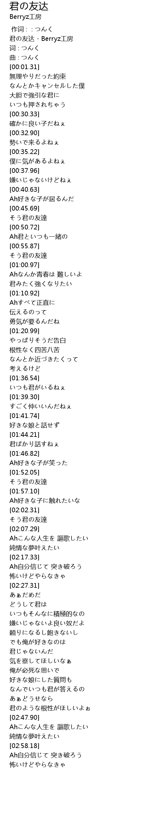 | [00:00.00] | 君の友达 - Berryz工房 |
