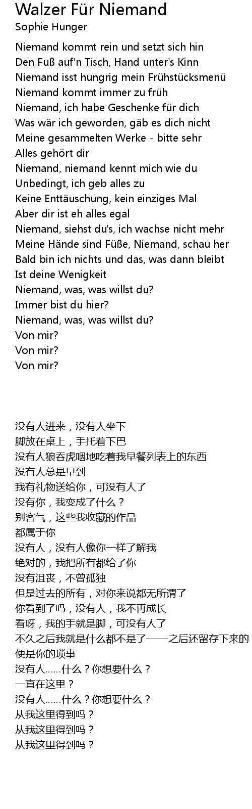 | [00:08.490] | Niemand kommt rein und setzt sich hin |