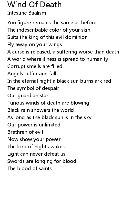 Furious winds of death are blowing |