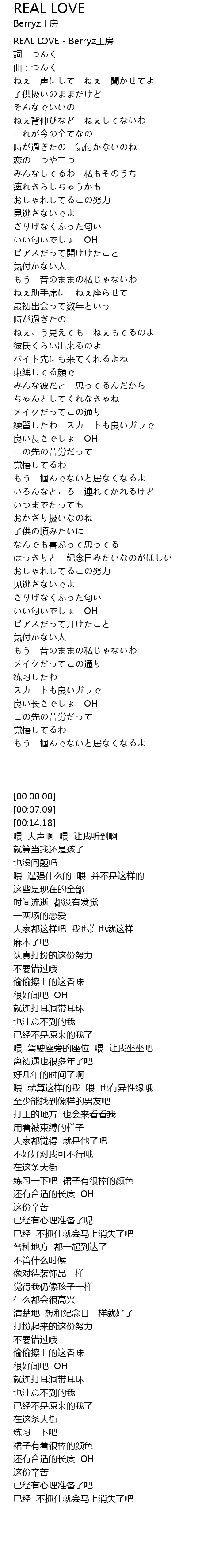| [00:00.00] | REAL LOVE - Berryz工房 |