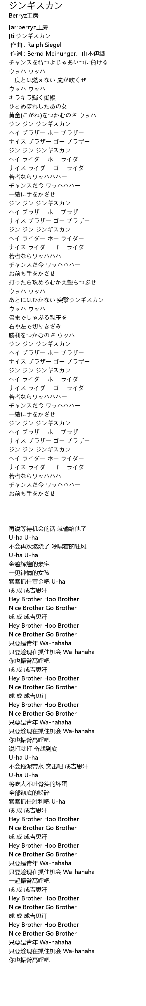 | [02:41.380] | ヘイ ブラザー ホー ブラザー |