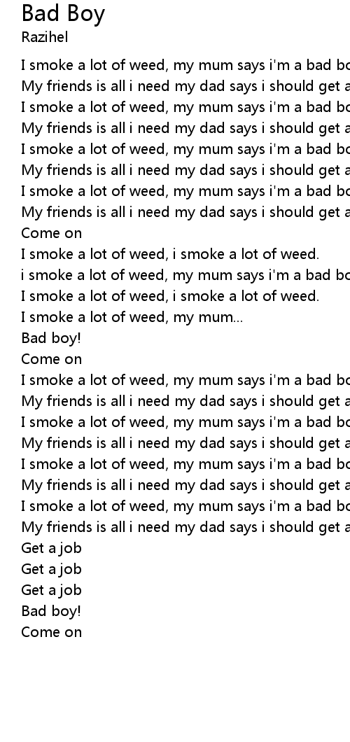 i smoke a lot of weed, my mum says i'm a bad boy. |