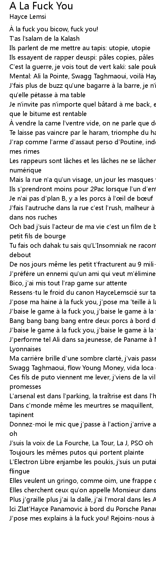 | J' pose ma haine a la fuck you, j' pose ma ' teille a la fuck you | |